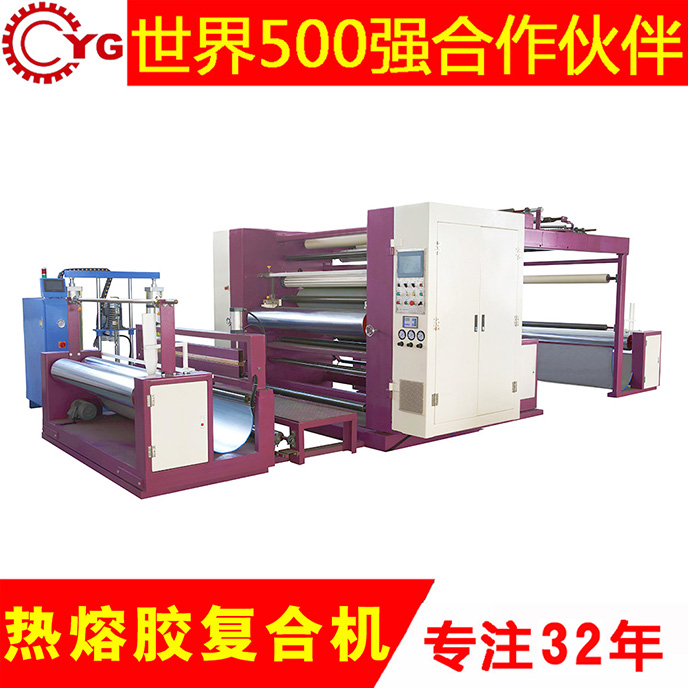 PUR热熔胶复合机是一种把不需溶剂、不含水份、100%的固体可熔性的聚合物,在常温下为固体,加热熔融到一定程度变为能流动且有一定粘性的液体粘合剂,把PUR热熔胶涂布在基材上面,然后把另一种基材和涂胶的基材复合在一起的设备。